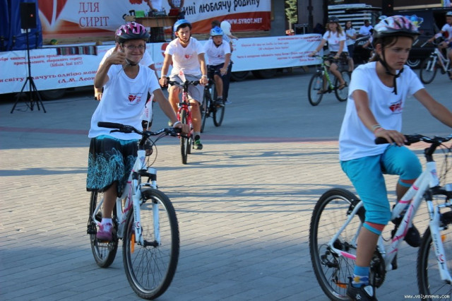 Всиновлювати дітей-сиріт закликали учасники міжнародного велопробігу, який дістався Луцька 7 серпня.