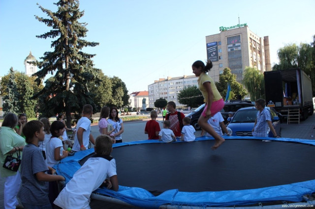 На Театральному майдані розташували пересувну сцену, неподалік від якої пропонували розваги для дітей, зокрема, стрибки на батуті та малювання. Представниці фонду допомоги жінкам «Єва» за допомогою муляжів демонстрували, як розвивається дитина в утробі матері.