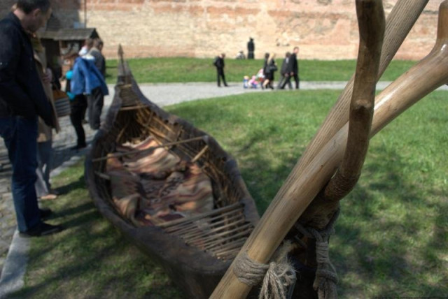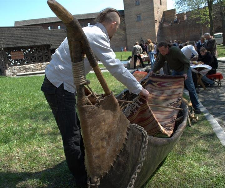 Посеред замкової площі та траві ініціативна група на чолі з Володимиром Бондаруком привезла човен власного виробництва.