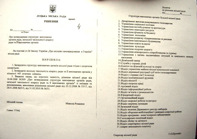 В луцькій мерії зникнуть усі департаменти, крім одного (документ)