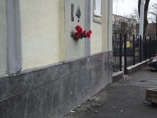 Близько 12-ї години уламки та штучні квіти під меморіальною дошкою були прибрані.