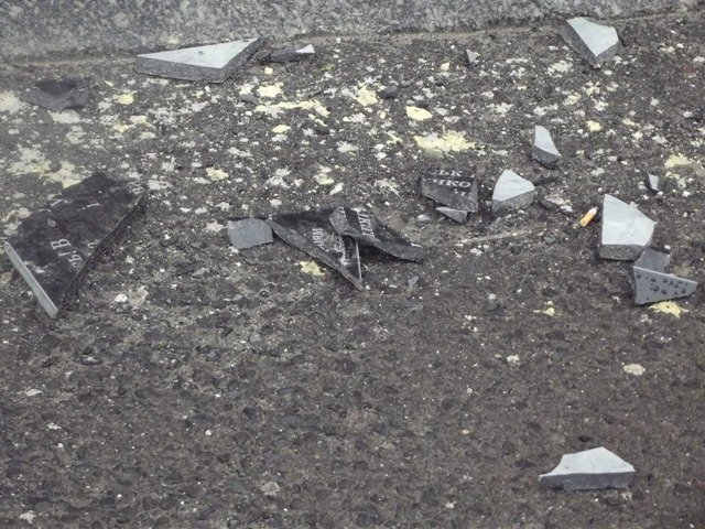 В неділю, 8 квітня, вранці перехожі могли бачити рештки розбитої дошки на землі, і уламки на будівлі Луцького медичного коледжу, що по вулиці Лесі Українки.