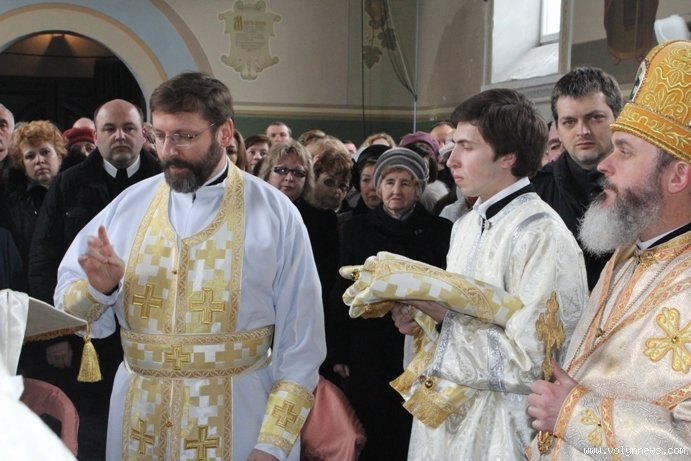 Верховний Архієпископ Української греко-католицької церкви Блаженніший Святослав Шевчук відслужив святкову Літургію в Луцькому соборі Різдва Пресвятої Богородиці. На зустріч з Главою Церкви прийшло багато мирян, серед яких - Луцький міський голова Микола Романюк та секретар ЛМР Григорій Пустовіт.