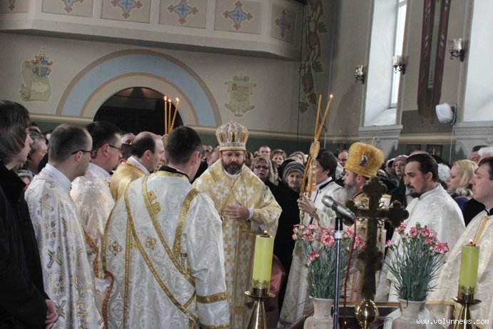 Святкова літургія – завершальний етап тижневої канонічної візитації голови УГКЦ на Волині. За час візиту Архієпскоп відвідав громади греко-католиків у Луцьку,Ковелі, Володимирі-Волинському та Нововолинську. Глава Церкви зустрівся з представниками обласної влади та міський головою Луцька та студентами Східноєвропейського національного університету імені Лесі Українки.