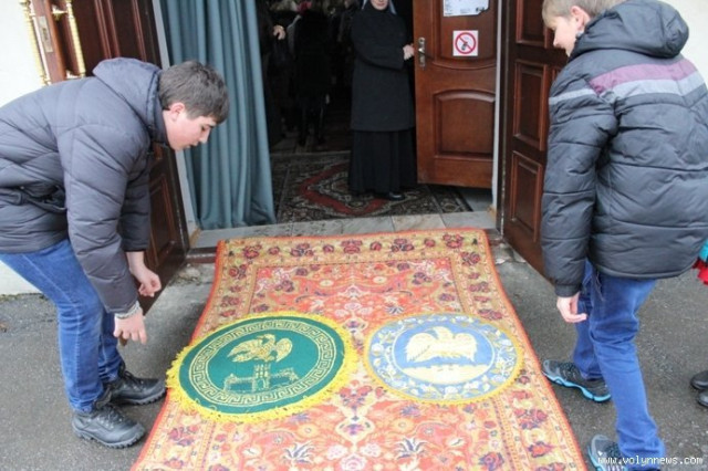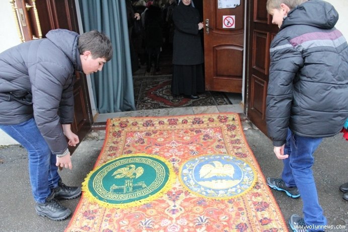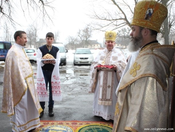 Зустрічали Блаженнішого Святослава у Луцькому соборі традиційно – хлібом на українських вишиваних рушниках.