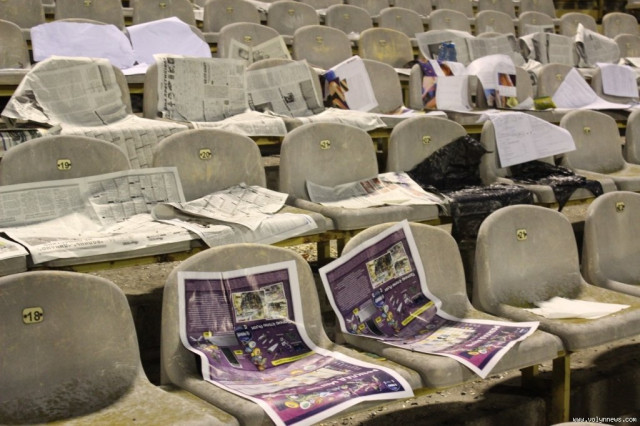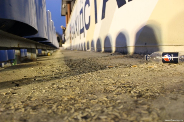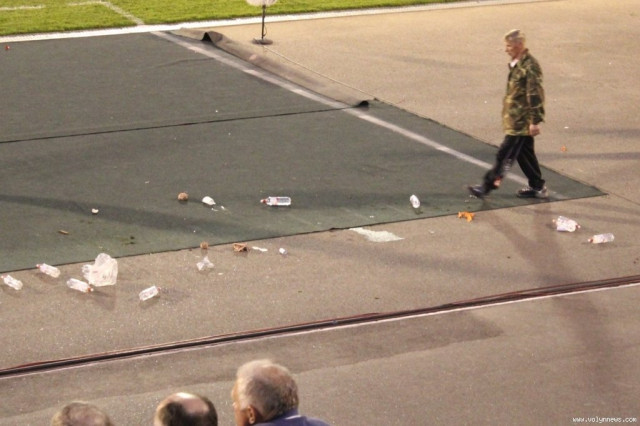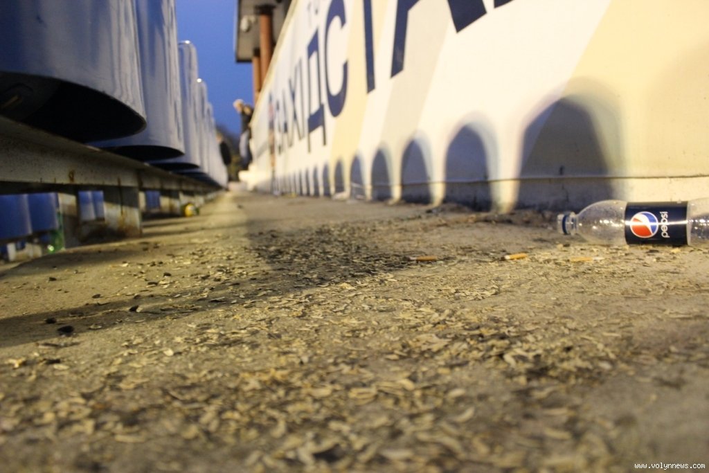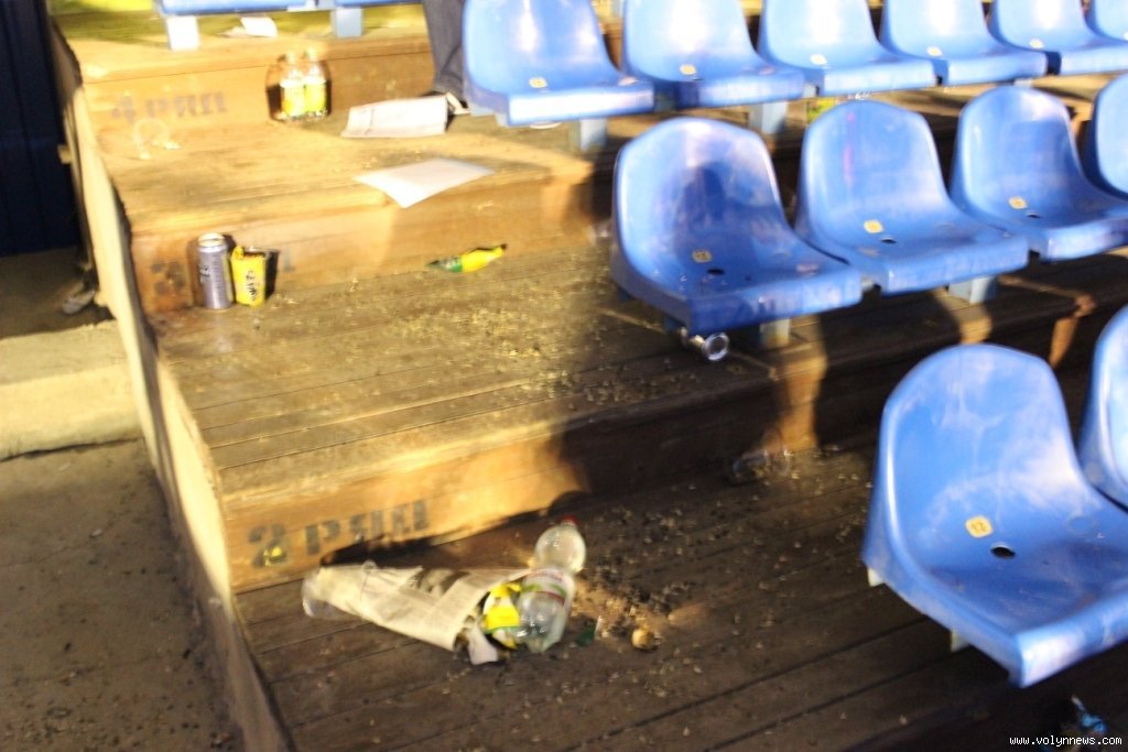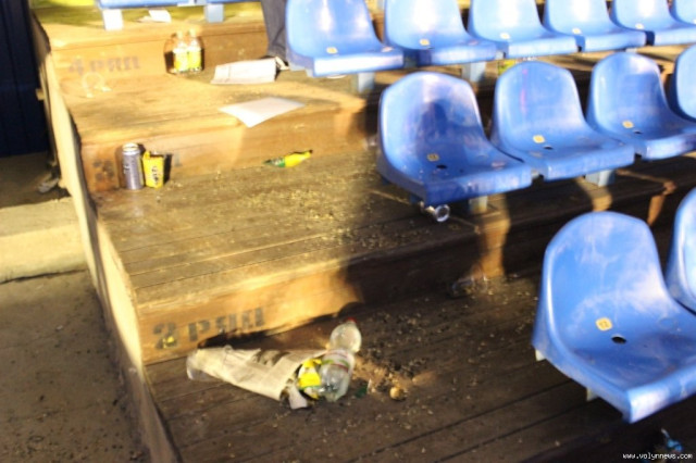 З жалем доводиться констатувати, що стадіон після матчу тонув у смітті. Лузгане насіння, недопалки, порожні пляшки. Навіть у прес-ложі знайшлися люди, які не змогли донести їх до смітників.