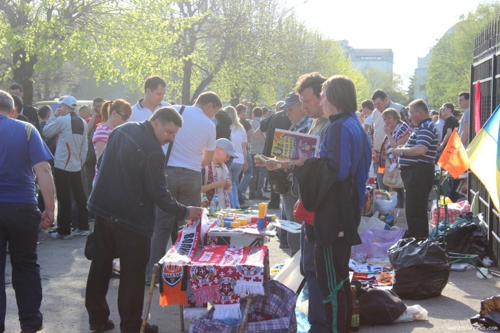 Окрім насіння, там можна було придбати атрибутику «хрестоносців». Шарфи з символікою луцької команди продавали за 60 гривень, а такі ж із написом «Волинь» - «Шахтар» - за 80.