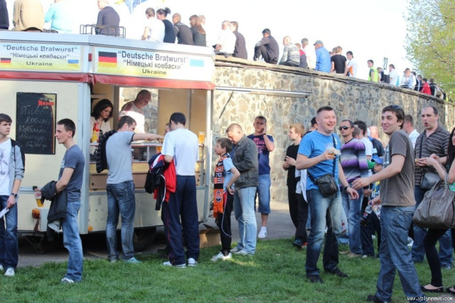 Приміром, поруч із чашею спортивної споруди півлітра пива можна було придбати за 8 гривень. А поласувати німецькими ковбасками – за 12.