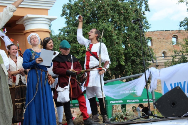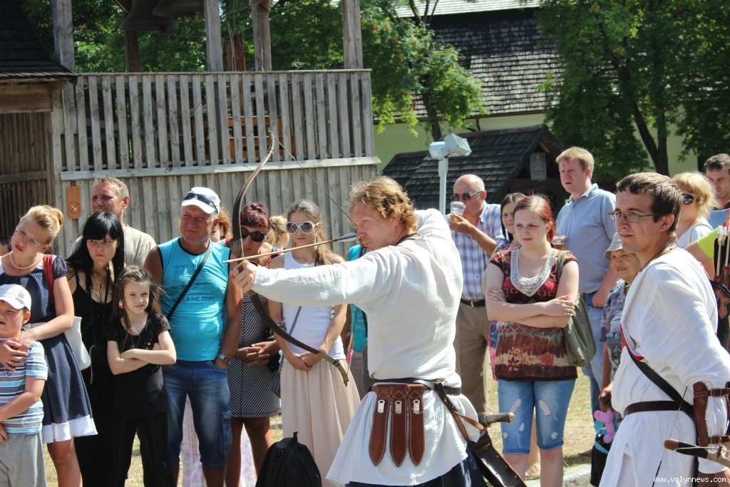 Білоруські лучники продемонстрували гостям фестивалю показові постріли у мішень, яку розмістили біля сцени.