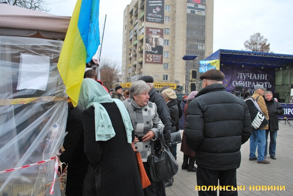 «Я вчора плакала…», - кажуть жінки, які прийшли на Театральний майдан Луцька сьогодні, 1 грудня. Події позаминулої ночі у Києві згадують зі сльозами на очах.