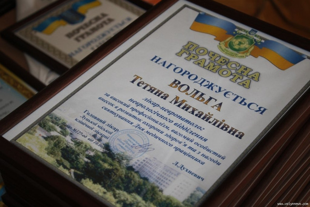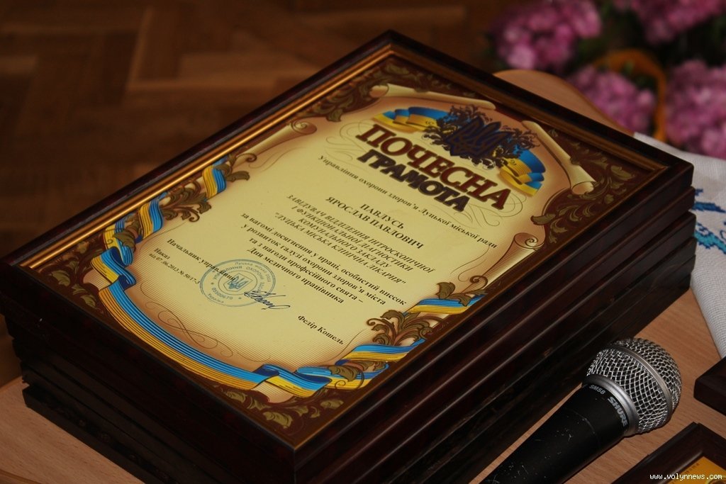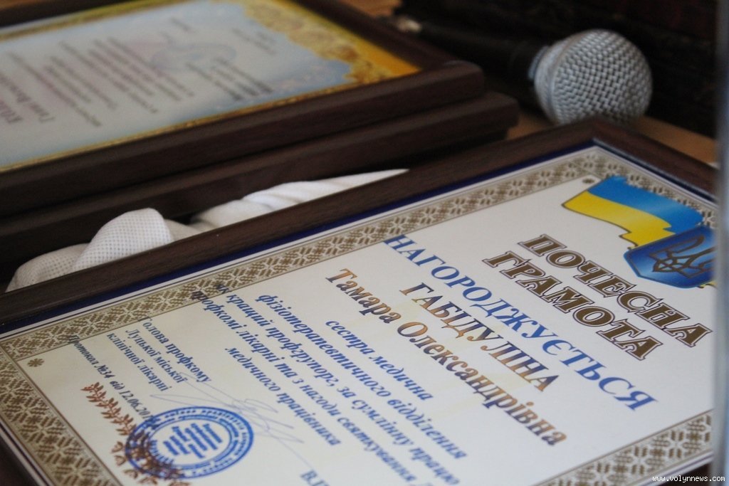 Під час дійства медикам вручили подяки, грамоти та грошові премії. А привітати працівників міської лікарні з-поміж інших прийшли Луцький міський голова Микола Романюк, його перший заступник Святослав Кравчук, начальник управління охорони здоров’я Луцької міськради Федір Кошель, а також керівництво закладу. Серед гостей був і Петро Палиця – голова наглядової ради «Фонду Ігоря Палиці – Новий Луцьк», який неодноразово надавав підтримку міській лікарні.