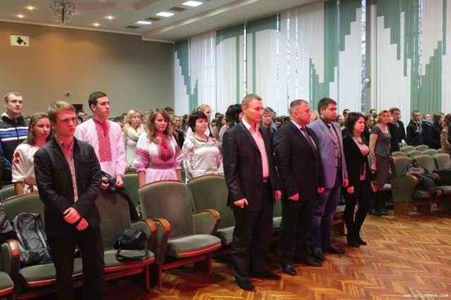 «Нас з вами 12,5 тисячі. Чи багато це, чи мало у двохмільйонній армії українського студентства? Я думаю, достатньо для того, щоб заявити вголос не лише у нас в регіоні, а й в державі. Я дивлюся і думаю собі: студент – це статус чи стан душі? Напевно, все ж таки, стан душі. З одного боку ви вільні, бо маєте достатньо часу, щоб реалізуватися як особистості, а з іншого боку перед вами стоять колосальні завдання, бо сьогодні ви кладете цеглинки в фундамент вашої майбутньої професійної діяльності. Кожен з вас, напевно, для себе відповідає на запитання – а що таке успіх, чого я хочу досягти у цьому житті? Відповідь очевидна, успіх – це 90% потіння і лише 10% везіння. Враховуючи, що сьогодні свято у нас з вами, я хочу, щоб ті 10% везіння постійно вас супроводжували у всьому – в навчанні, в роботі, в коханні. Я хочу, щоб в стінах нашого університету кожен з вас віднайшов себе як майбутній професіонал. А з другого боку, я хочу, щоб у вас вдавалося і особисте життя», - звернувся Михайло Яцишин до студентів.