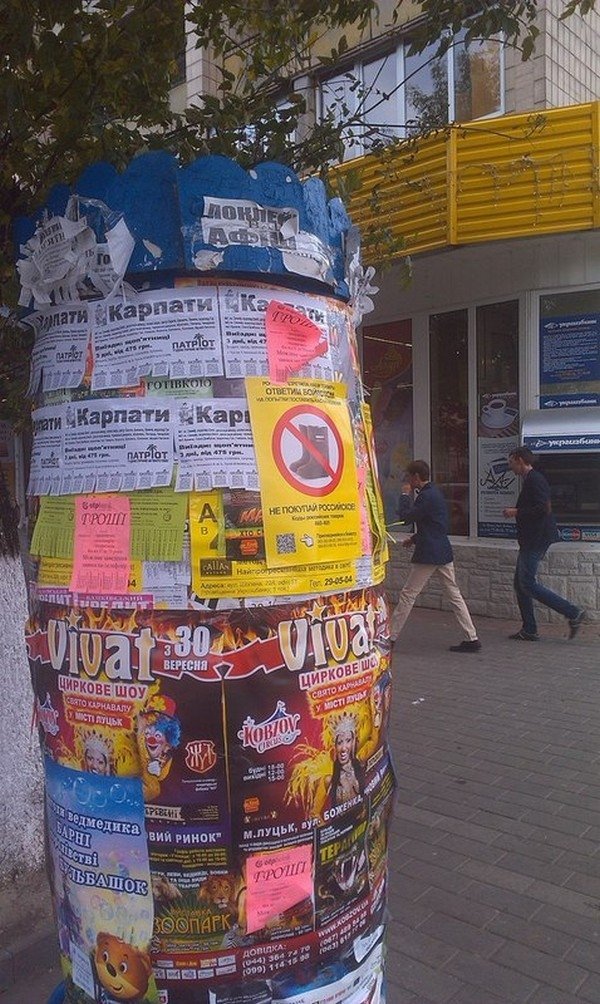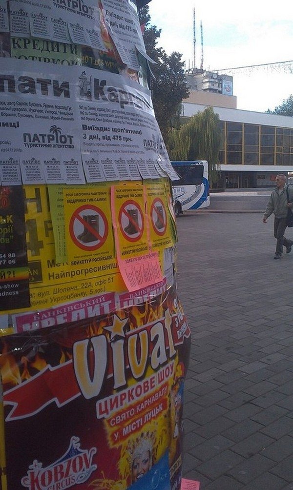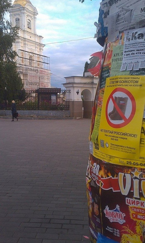 Також біля торгівельних мереж, магазинів, ринків та у супермаркетах можна зустріти аналогічні заклики із штрих-кодом товаровиробників Російської Федерації та іншим російським символом – валянками, - інформує Громадський рух «Відсіч».