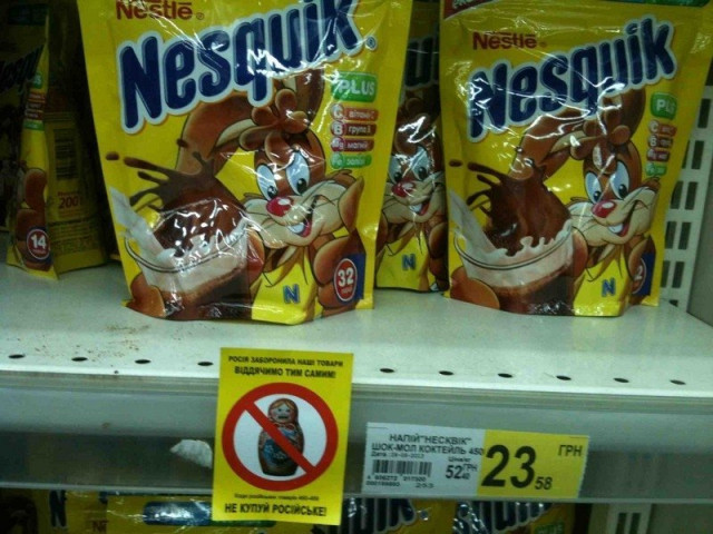 Може і їсти скоро припинеш? Тобі не приходило у голову, що товар українського виробника, а зроблений з російської сировини? Видно, ні!