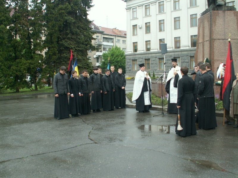 Вояки УПА наголосили: 9 Травня – не День Перемоги, а день скорботи. Розпочався захід перед пам’ятником Кобзареві із поминальної панахиди, яку провів священик Свято-Троїцького кафедрального собору. Охороняв спокій дійства гурт із десятка правоохоронців.