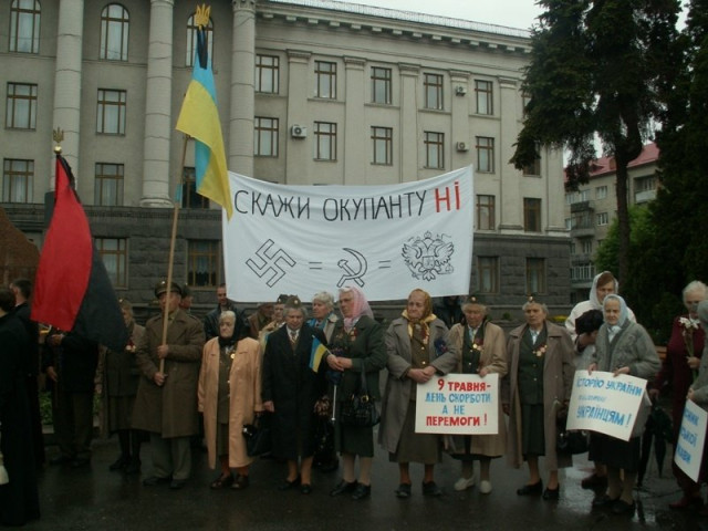 Слава Україні! Царство небесне тим, хто загинув у боротьбі з нацистами, фашистами та комуністами! Ганьба тим, хто святкує "Велику Перемогу у Великій Вітчизняній Війні"! В храми, люди, йдіть, моліться за душі загиблих родичів, гріхи наші замолюйте...