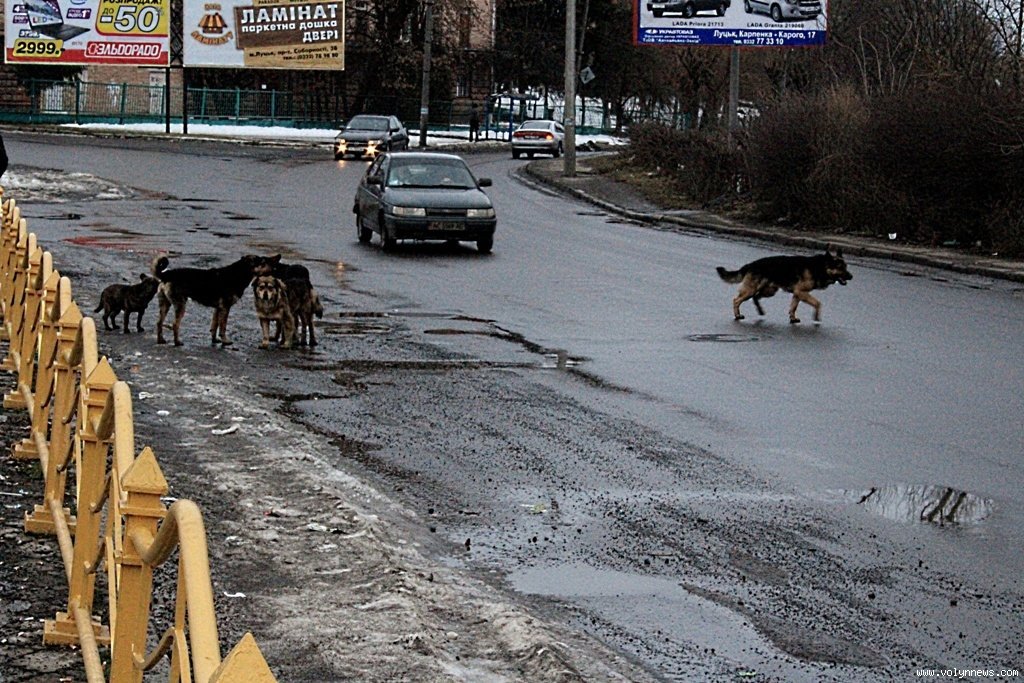 Біля Волинської обласної інфекційної лікарні, що знаходиться на вулиці Шевченка, зграями бігають бродячі собаки. Тварини заважають руху транспорту і створюють аварійні ситуації на дорогах.
