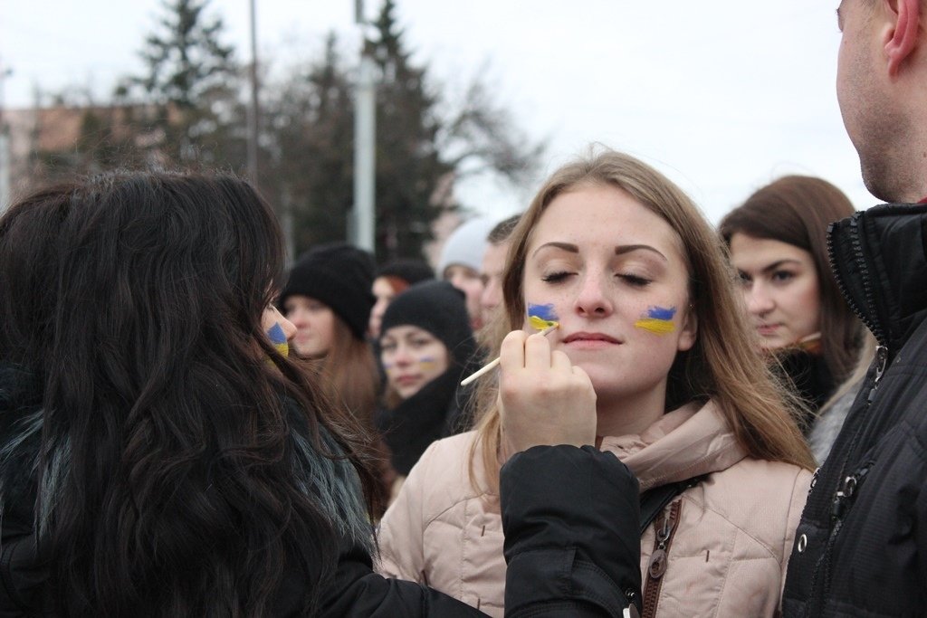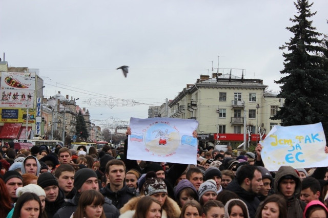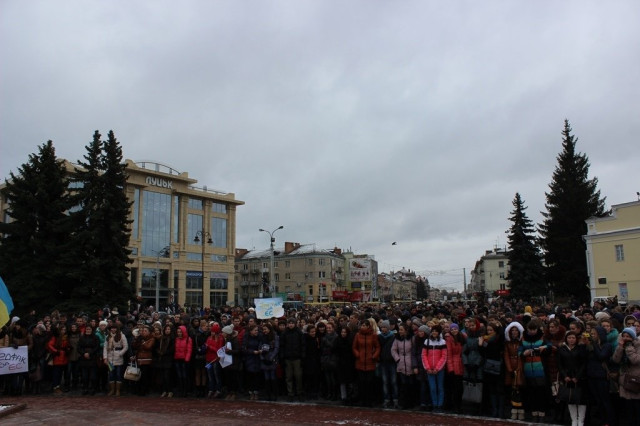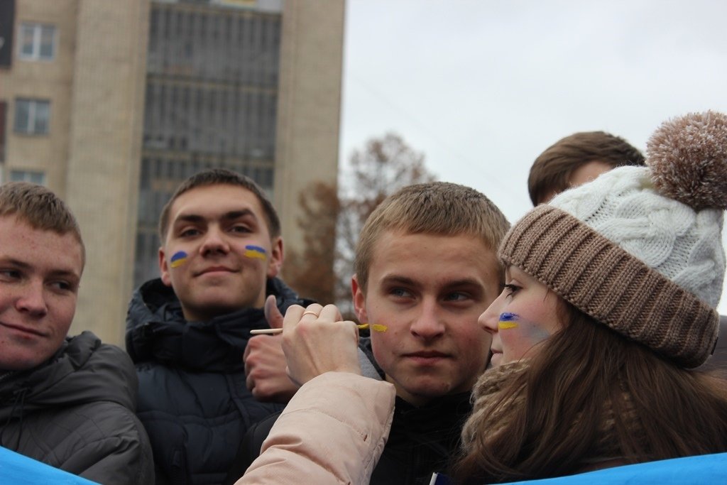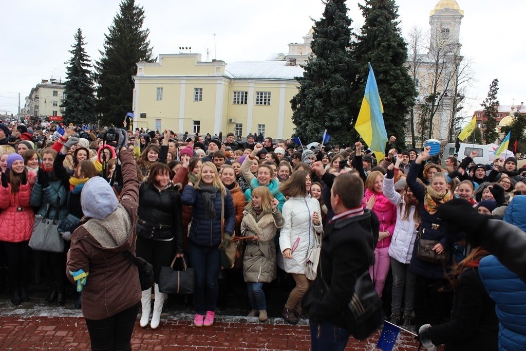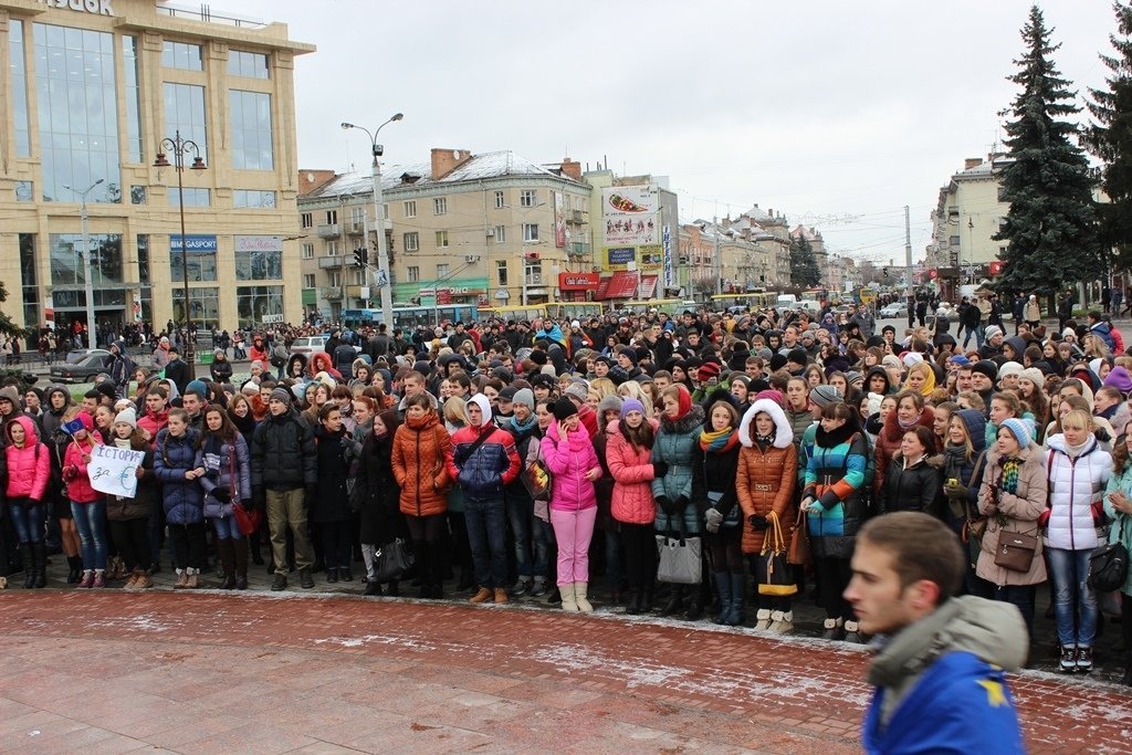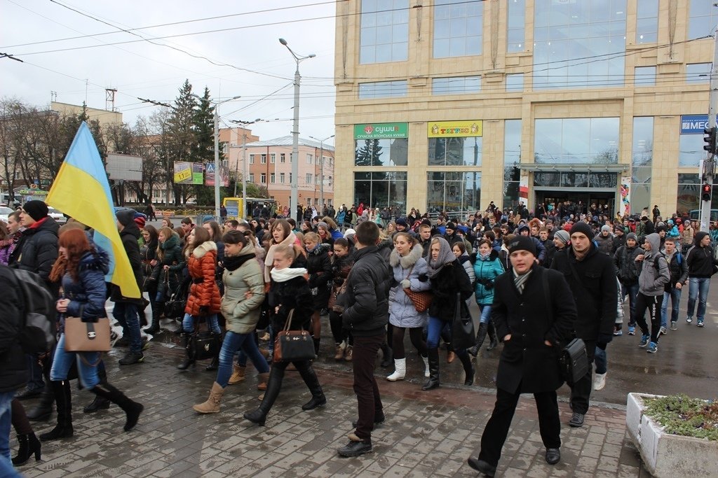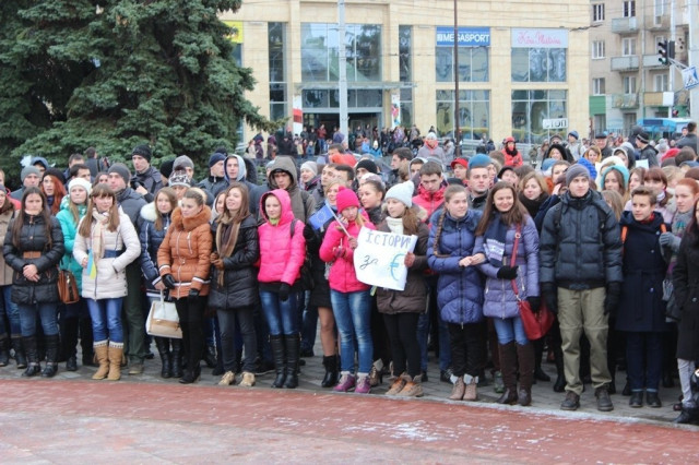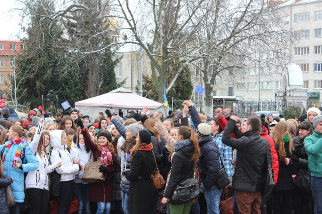 Під гасла «Студенти за ЄС» та неофіційний гімн Євромайдану «Вставай, Україно» гурту Океан Ельзи, студенти підтримали заклики організаторів про підтримання угоди щодо асоціації з ЄС.