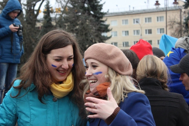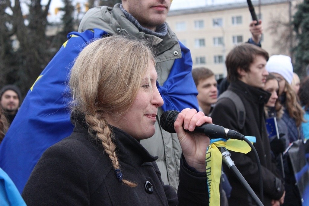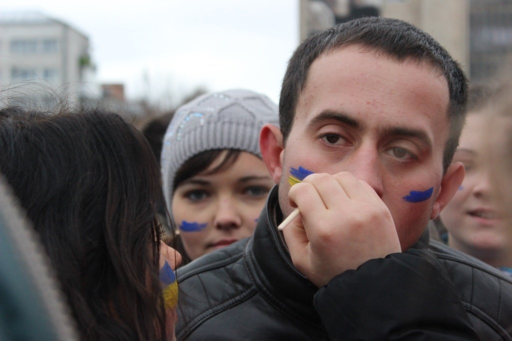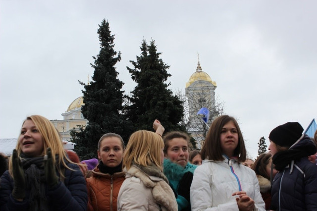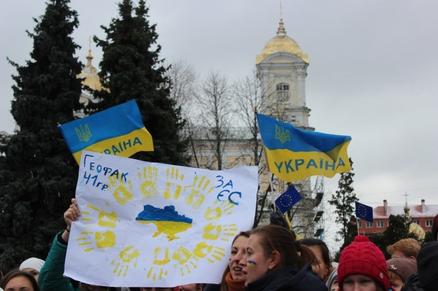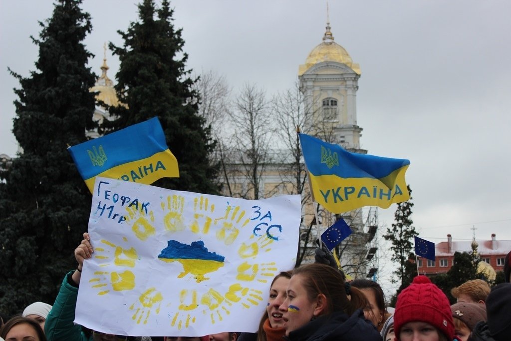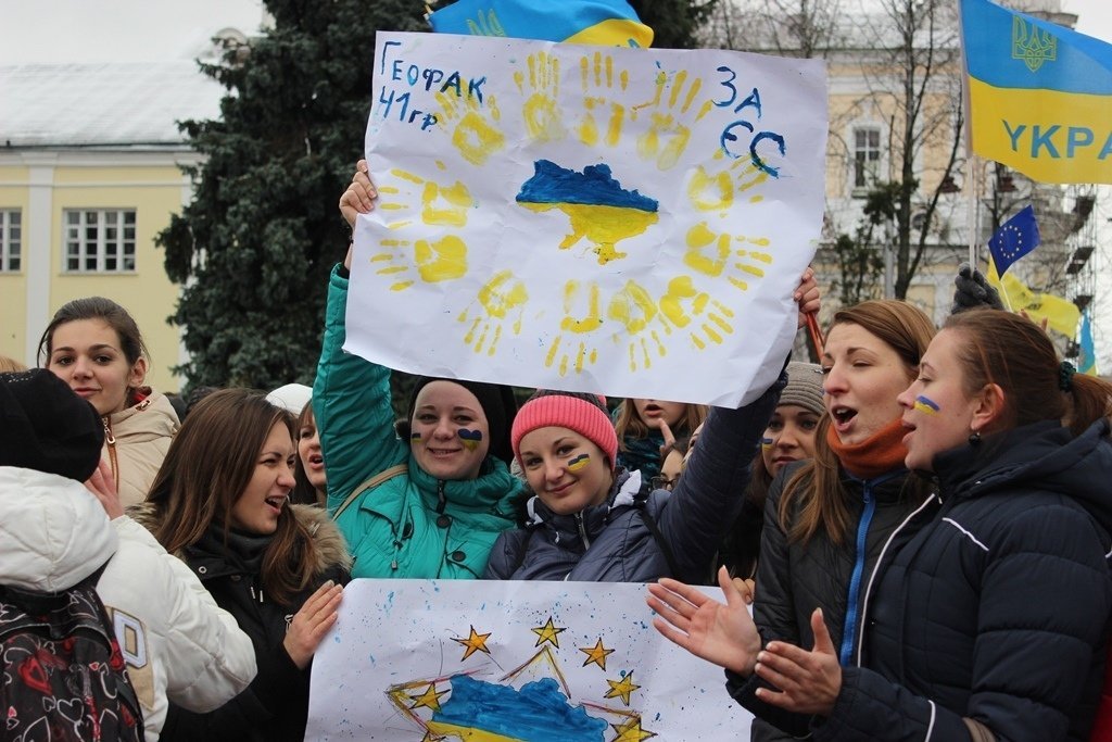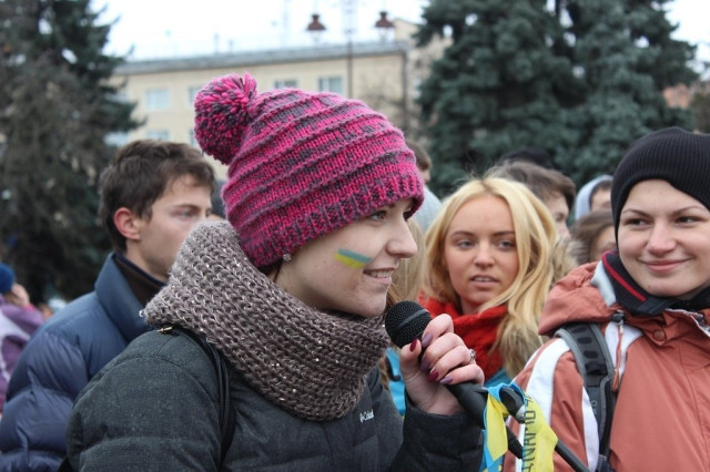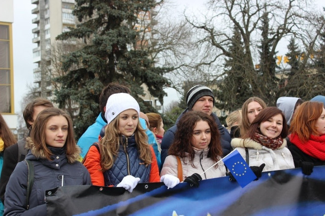 Під гасла «Студенти за ЄС» та неофіційний гімн Євромайдану «Вставай, Україно» гурту Океан Ельзи, студенти підтримали заклики організаторів про підтримання угоди щодо асоціації з ЄС.