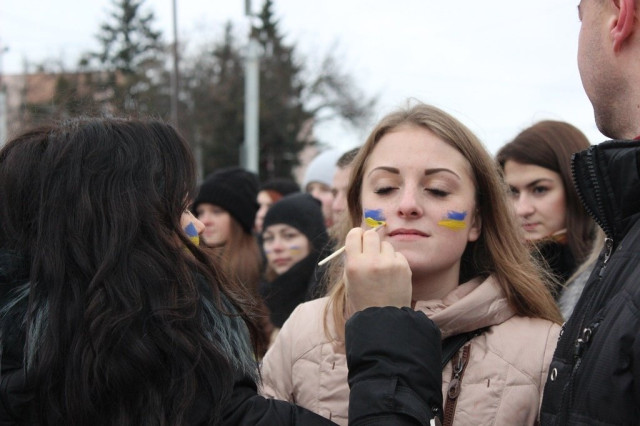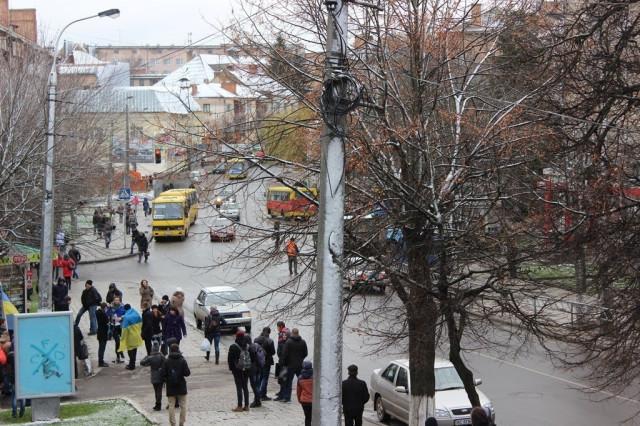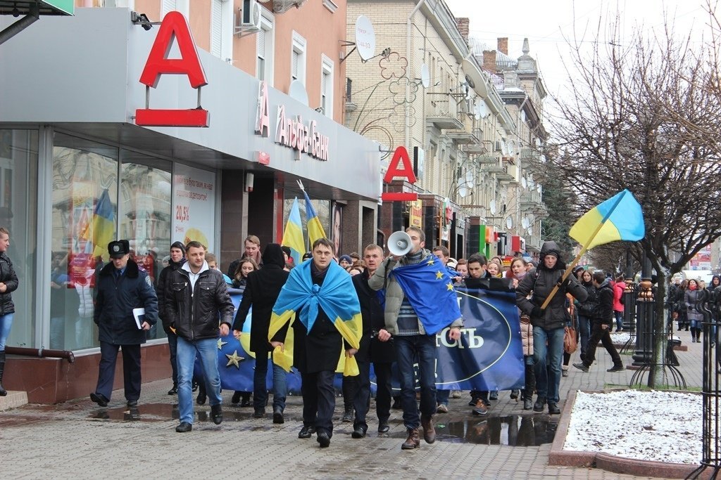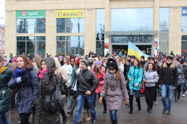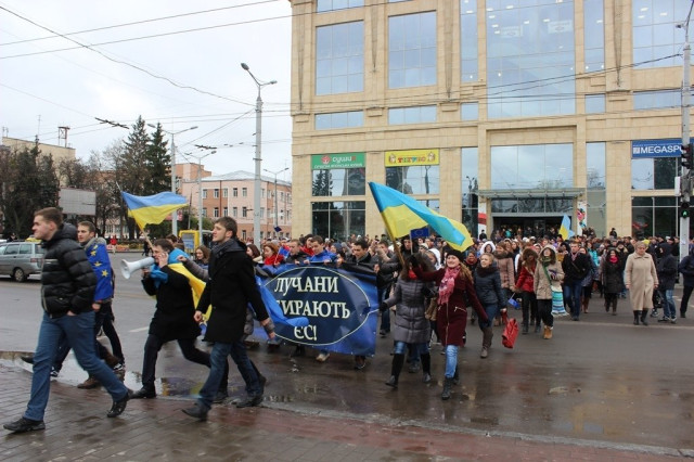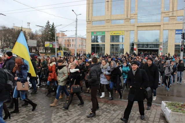 Колона студентів рушила від юридичного корпусу СНУ до головного, а вже звідти, під заклики «Студенти за ЄС» та «Смерть москалям» - на центральну площу міста.