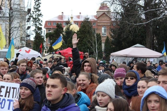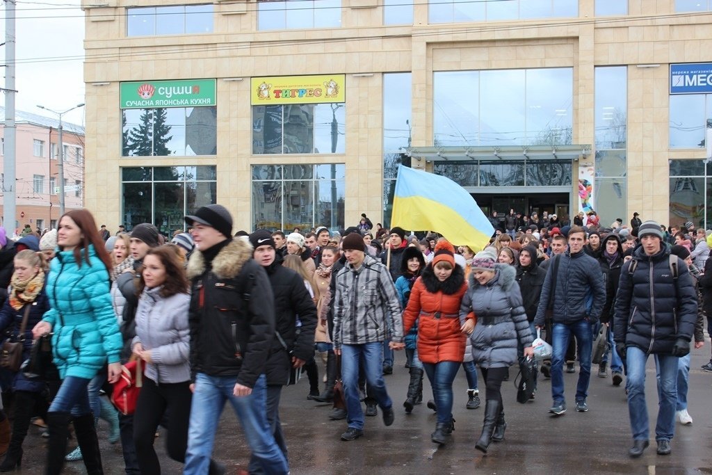 Памятаю як у вівторок прямо з пар (деревяні конструкції) пішли всією групою по Гнідавській, Лесі Українки в центр... а там народу тьма... доречі і деякі викладачі стояли поряд із нами...