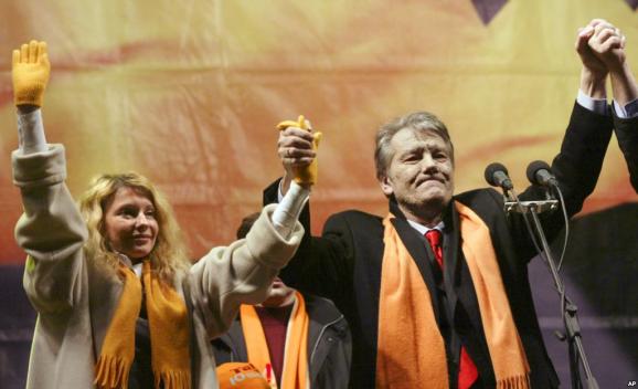 Лідери Помаранчевого Майдану Віктор Ющенко та Юлія Тимошенко