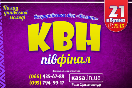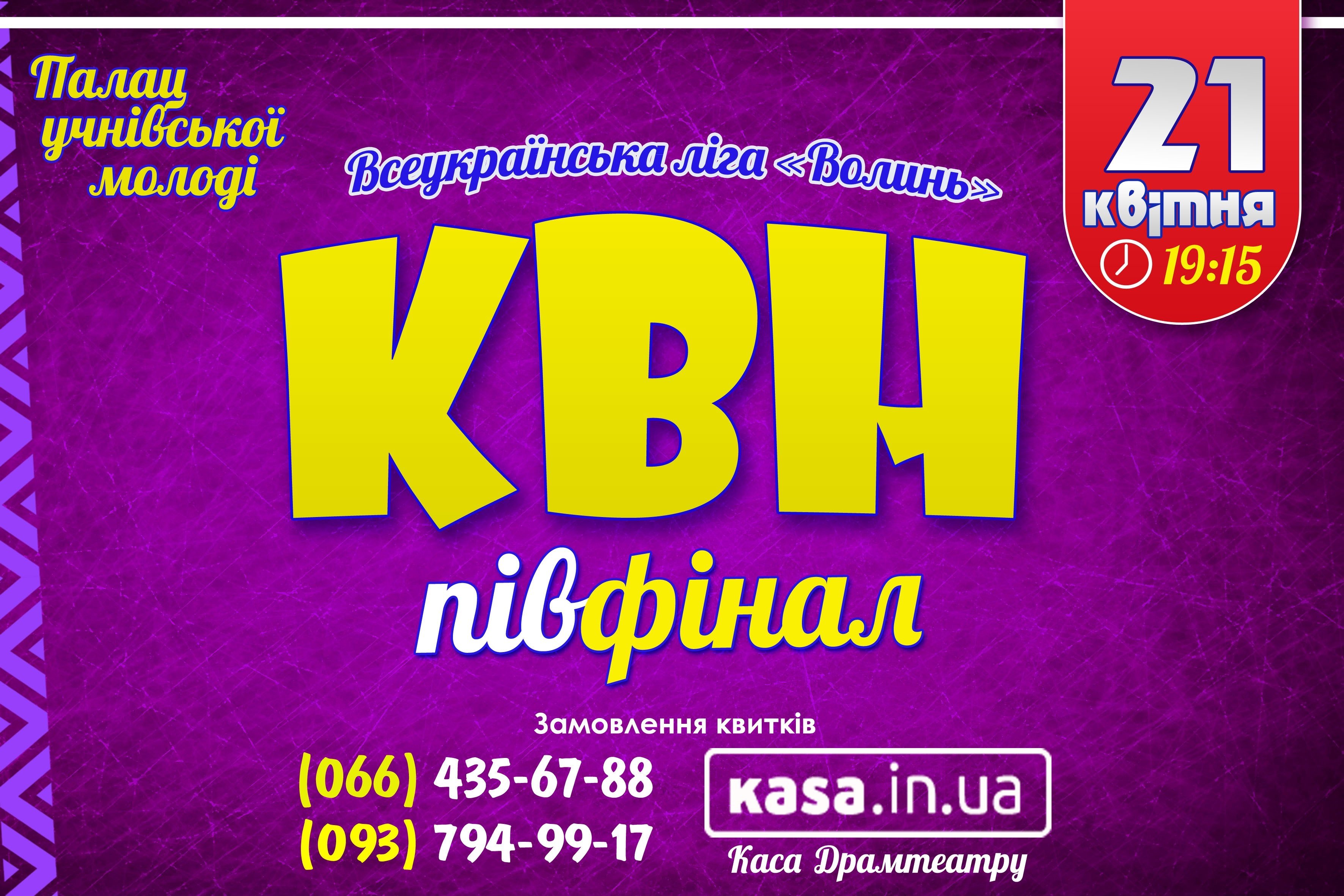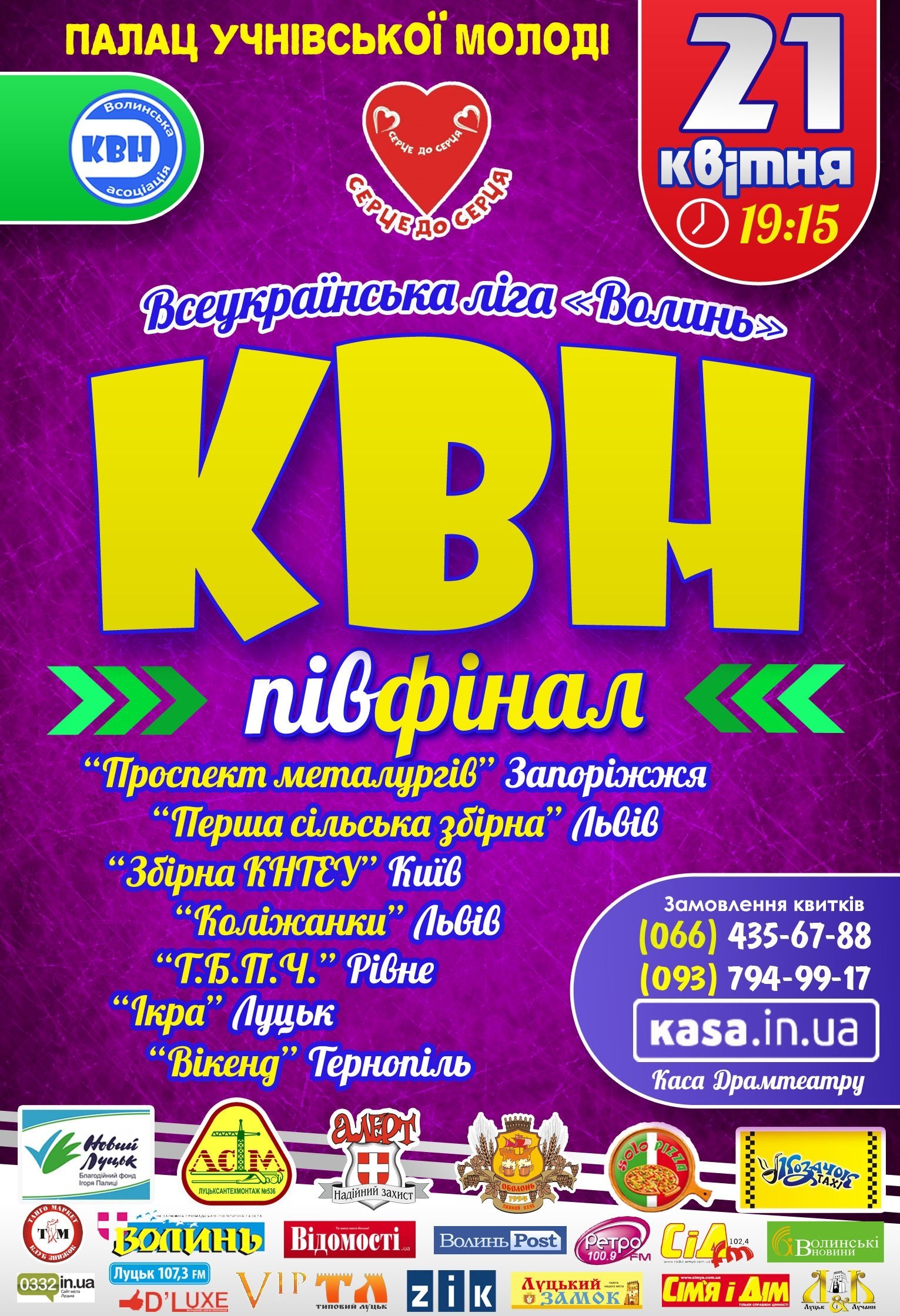 Другий півфінал Всеукраїнської ліги КВН «Волинь» відбудеться 21 квітня, о 19:15, в Палаці учнівської молоді Луцька.