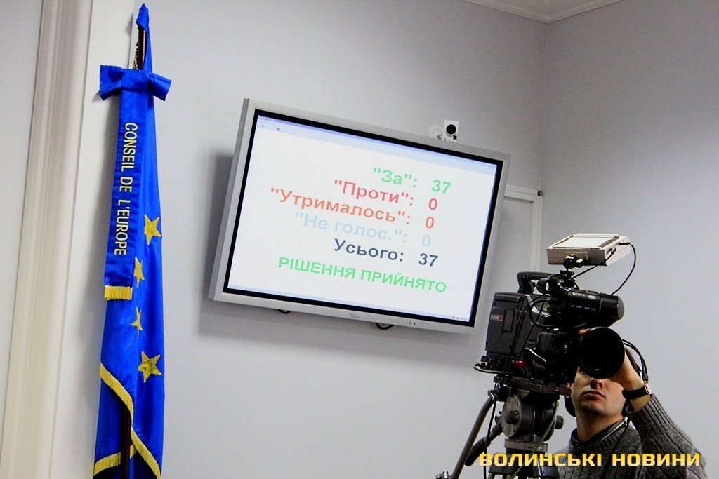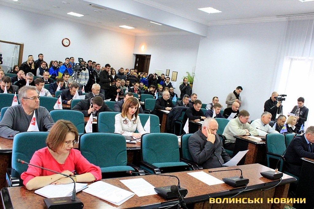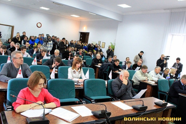 У сесійній залі, окрім депутатів та представників ЗМІ, були присутні і самі мітингувальники. Ті, хто не помістився у приміщенні - чекали рішення під стінами Луцькради.