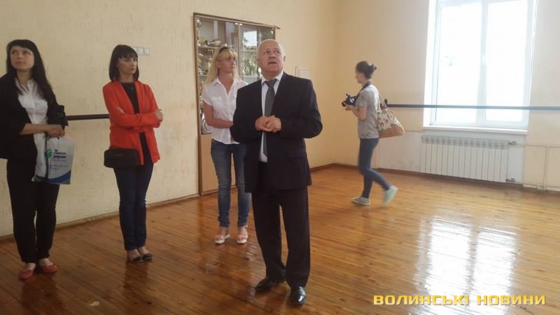 Директор Палацу культури, заслужений діяч мистецтв України Юрій Войнаровський провів депутатів міської ради по коридорах та залах приміщення палацу. Огляд розпочали з правого крила, де розташована хореографічна база палацу культури. Тут знаходяться три танцювальні зали, де проводять репетиції колективи, є виставковий зал та арт-галерея.Перший зал, який оглядали депутати, закріплений за народним ансамблем бального танцю «Юність». Це приміщення ремонтувалося п’ять років тому, проте паркет регулярно покривається спеціальним слизьким лаком, чого вимагає специфіка бальних танців.Другий зал, в який запросили депутатів, використовується хореографічним колективом народних танців «Волиняночка». Тут нещодавно зробили ремонт, утеплили приміщення та закупили нову музичну апаратуру.Ще один зал для конференцій, який показав директор палацу культури, використовується громадськими організаціями абсолютно безкоштовно.