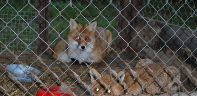 А от іще одна парочка, на цей раз лисенят, - схоже, вони не зійшлися характером. Живуть разом, проте, кажуть працівники зоопарку, особливо не дружать.