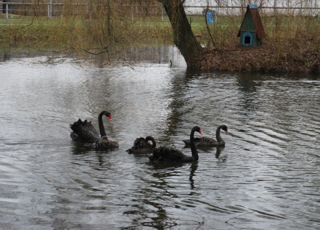 Унікальні чорні лебеді пташине кохання довели на початку осені. У них вилупилось 5 пташенят, двоє з яких померло. Народження цього виду птахів у неволі - рідкісне явище. Працівники зоопарку зізнаються, що зовнішність лебедів була спочатку огидною. Тепер вони набувають справжньої краси.