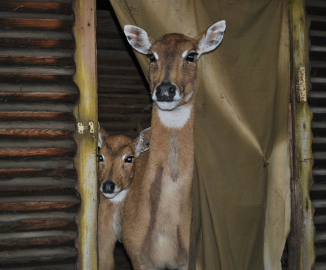 Єноти зараз змінили шерсть із літньої на зимову. Проте демонструють свій дорогий вигляд неохоче. Для родини косуль спеціально облаштували утеплений будиночок.