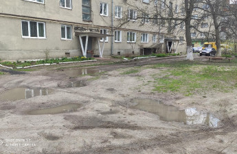 На прибудинковій території, що на вулиці Потебні, 46 у Луцьку, необхідно навести лад: відремонтувати проїжджу частину, пішохідні доріжки, зрізати аварійні дерева