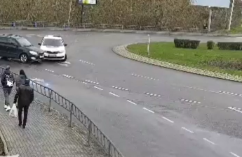 У Луцьку на кільці поліція влетіла в легковик. Відео моменту ДТП