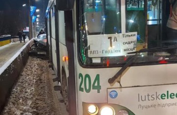 Повідомили подробиці вечірньої аварії у Луцьку, яка сталася на мосту за участю тролейбуса та легкового автомобіля