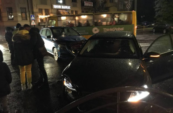У центрі Луцька зіткнулися Volkswagen та Mercedes. Від зіткнення Volkswagen влетів у огорожу