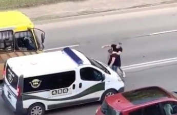 У Луцьку невідомі на Мерседесі підрізали маршрутку, витягли водія та побили. Відео