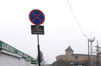 Підприємці Старого ринку у Луцьку розвернули знак 3.34 (парковка і зупинка заборонені) в іншу сторону на вул Замковій, щоб уникнути відповідальності за блокування дороги