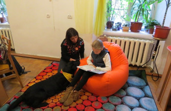 Каністерапія у бібліотеці: у Луцьку діти читають книги чотирилапому другу