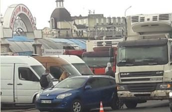 Поблизу ринку у Луцьку вантажівка в'їхала у легковик