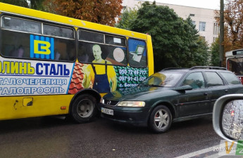 У Луцьку на проспекті Перемоги поблизу зупинки біля історичного факультету зіткнулись маршрутка і легковик «Опель». Ймовірно, авто в’їхало в маршрутку