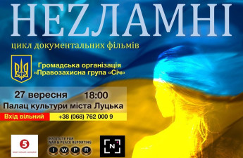 «НЕZЛАМНІ» - короткі документальні фільми про українських жінок, які пройшли пекло полону та потрапили до рук бойовиків незаконних збройних формувань за активну проукраїнську позицію та допомогу українським військовим. Показ циклу фільмів відбудеться 27 вересня о 18:00 у Палаці культури міста Луцька.