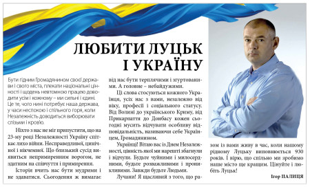 Лучани! Я щасливий з того, що разом із вами живу в час, коли нашому рідному Луцьку виповнюється 930 років. І вірю, що спільно ми зробимо наше місто ще кращим. Цінуйте і любіть Луцьк!