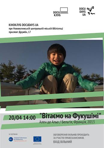 20 квітня 2016 року о 14 годині до 30-ї річниці Чорнобильської катастрофи у кіноклубі Docudays UA при Нововолинській центральній міській бібліотеці відбудеться перегляд і обговорення фільму бельгійського документаліста «Вітаємо на Фукушімі».