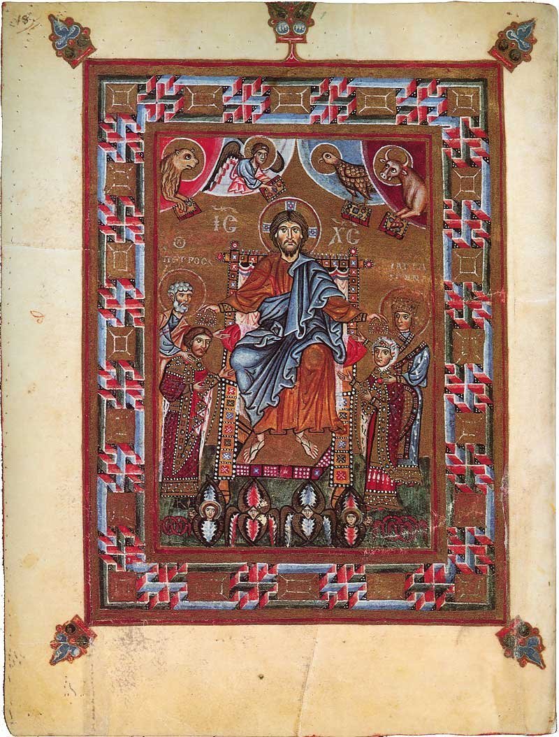 Христос коронує князя Ярополка Ізяславича і його дружину Ірину. Ілюстрація до Трирського псалтиря