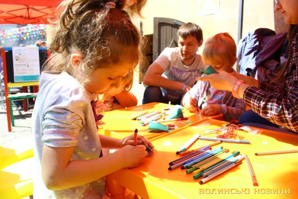 Дітки активно беруть участь у конкурсах і виграють цінні призи, долучаються до майстер-класів, на яких вчаться виготовляти паперові кімнатки, імпровізовані солодощі та жабки-іграшки, наносять на обличчя різноманітні візерунки або зображення тваринок, розмальовують глиняні фігурки, вчаться гончарства, скачуть на батуті та переносяться в середньовічні лицарські ігри.