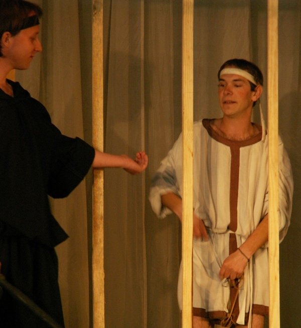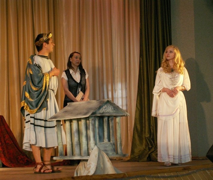 Дуже емоційно, сидячи за звуковим пультом, слідкував і постановник вистави та художній керівник театру-студії «Синіх птах» (народний артист України) Олександр Якимчук: «Ми працювали над виставою з минулого року. Але то бал, то різні концерти проводять мої хлопці, тому вже ретельна робота тривала три місяці. Ми хотіли показати продажність усіх людей і звернути сюжет на сучасність. Бо, насправді, хотіли показати не Стародавню Грецію, а людські якості. А послання вистави таке: продавши хоч трошки України, можна продати її всю».