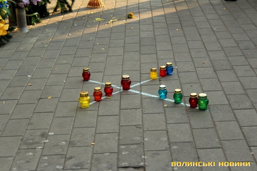 Акція, приурочена до річниці загибелі Георгія Гонгадзе, відбулася 16 вересня на Театральному майдані у Луцьку. Працівники волинських ЗМІ утворили хрест із лампадок поблизу стенду пам’яті Героїв Небесної Сотні та Героїв АТО.