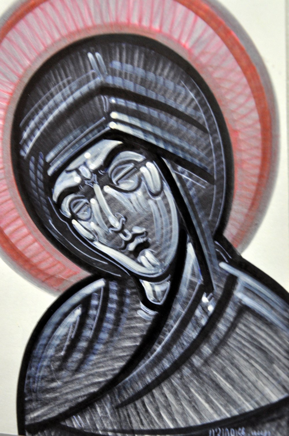 "Малював по одній роботі щодня, хіба хворів чи був надто зайнятий, тоді надолужував. Починав із січня, 18 лютого – найважчий день, тоді були перші жертви на Майдані, саме тому на календарі зображена червоним кольором Богородиця. Техніка звичайна – різнокольорові маркери та картон. Були святі, які одразу "лягали", їх легко було малювати, а були такі, що навіть після прочитання їхнього житія, перегляду робіт іконописців було важко малювати", - каже Сергій Радкевич.
