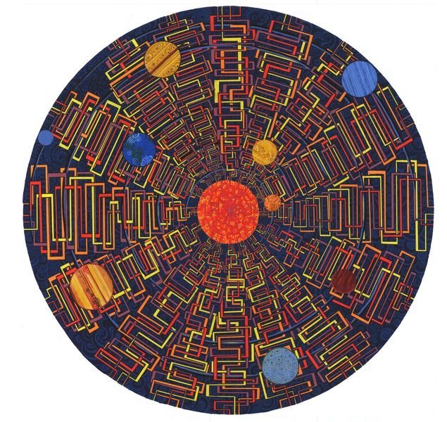 Лабіринт для мене не є головним образом, а насамперед засобом, яким я хочу показати суть людського життя. Ми шукаємо свій шлях, і перед нами завжди стоїть якийсь вибір: направо чи наліво, прямо чи назад, можливо – зупинка на шляху. І в тому шляху нема прямої лінії, а є лабіринт рішень. У моїх лабіринтах немає одного входу і одного виходу. Як і нема правильного чи неправильного рішення. Їх безліч, як і безліч наших рішень. І яке рішення ми приймемо – то і є найкраще.Звернула увагу на образ Сонця у твоїх роботах – яскравий язичницький символ. Сонцю ти присвятив цикл робіт «Сонце – Осінь», «Сонце – Літо», «Сонце – Зима», «Сонце – Весна», а ще робота з назвою-загадкою «СонЦе».